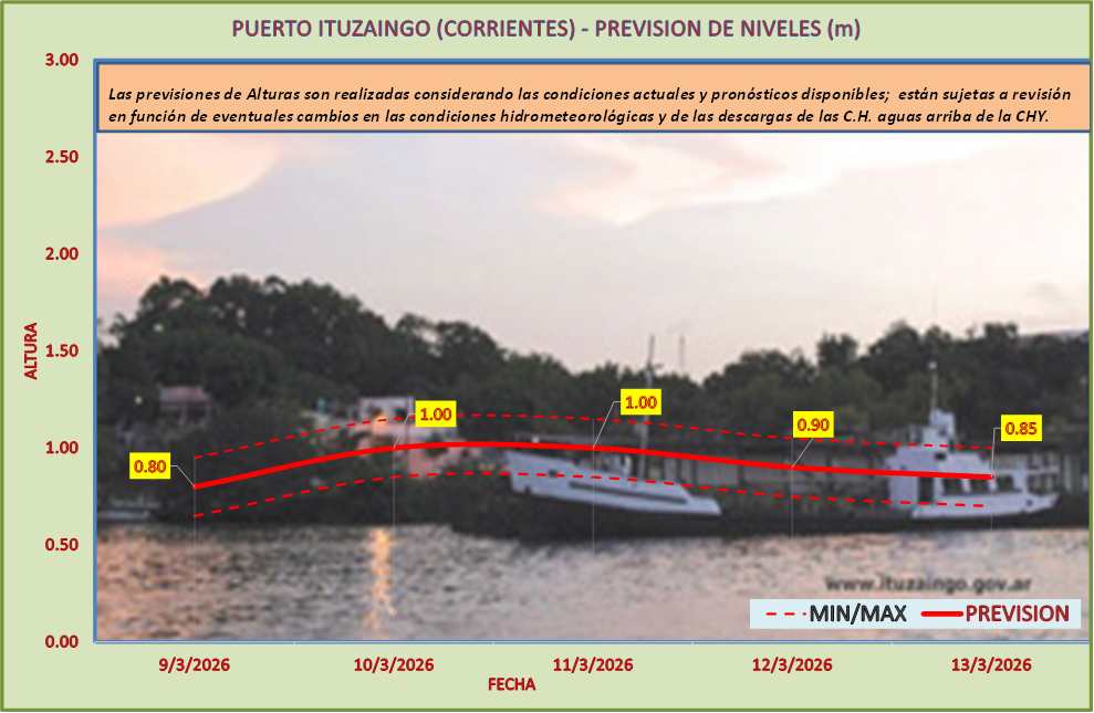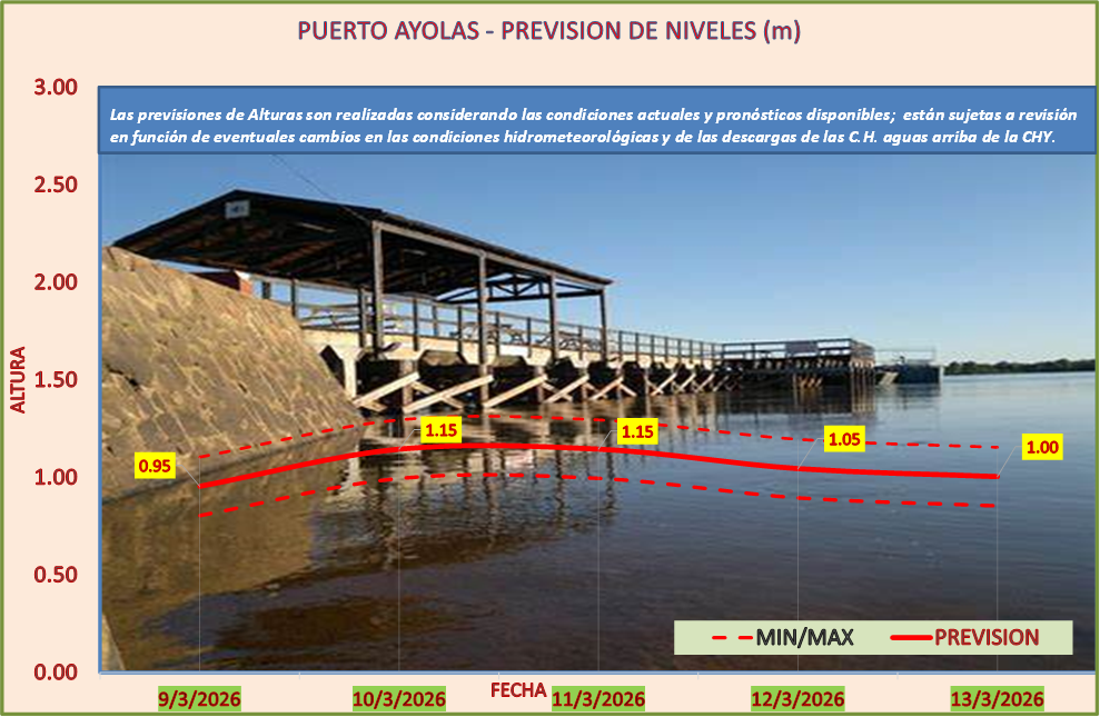Las previsiones de Alturas son realizadas considerando las condiciones actuales y pronósticos disponibles y están sujetas a revisión en función de eventuales cambios en las condiciones hidrometeorológicas y de las descargas de las C.H. aguas arriba de la CHY.