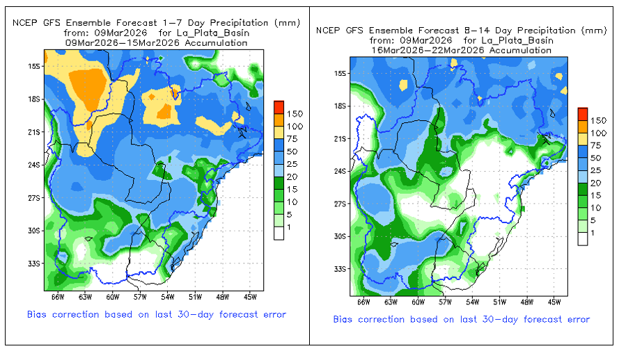 El pronóstico Hidrometeorológico del Centro Climático de referencia indica una tendencia semanal de poca significancia hidrológica en la cuenca de interés para la CHY con dispersión geográfica según sea la fuente consultada. (Ver gráfico Nro. 1).