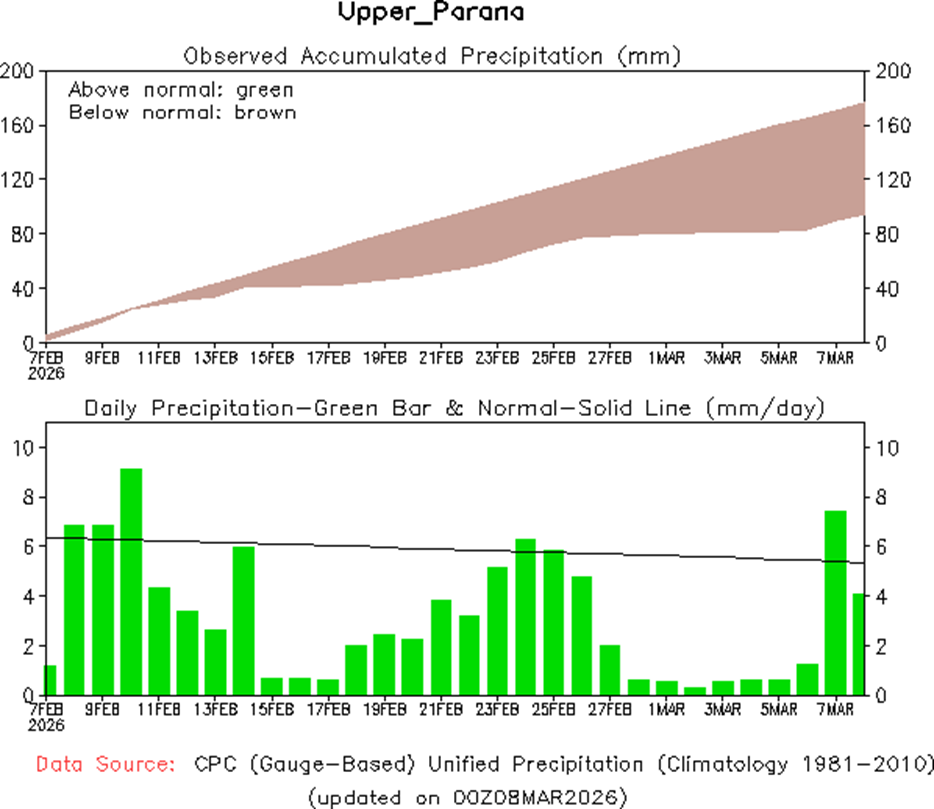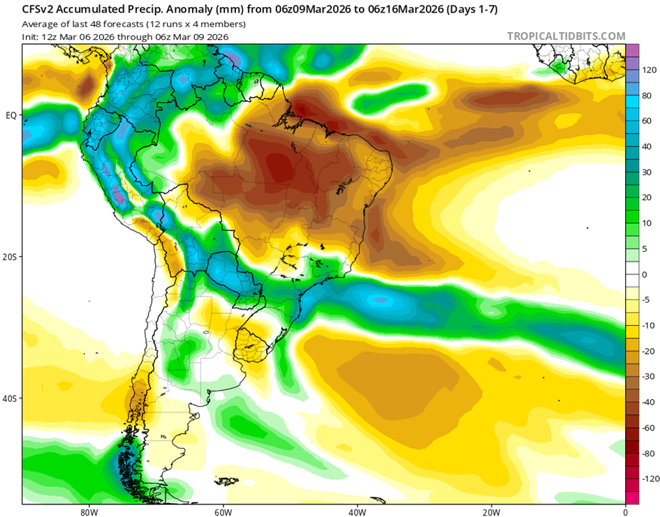 • Los vientos alisios en el Pacífico ecuatorial han sido cercanos o ligeramente más fuertes que el promedio en las últimas semanas. Los pronósticos de la Oscilación Madden-Julian sugieren que los vientos alisios podrían debilitarse en las próximas dos semanas, lo que podría contribuir a la ruptura del patrón de La Niña.