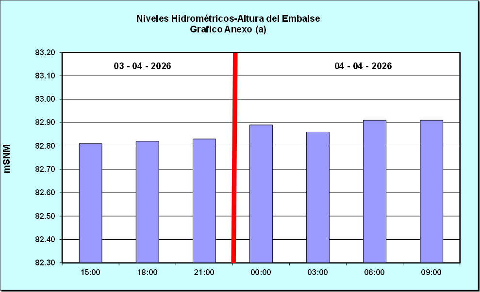 Nivel de Ayer (06:00 hs) = 82.74 mSNM Nivel de Hoy (06:00 hs) = 82.86 mSNM