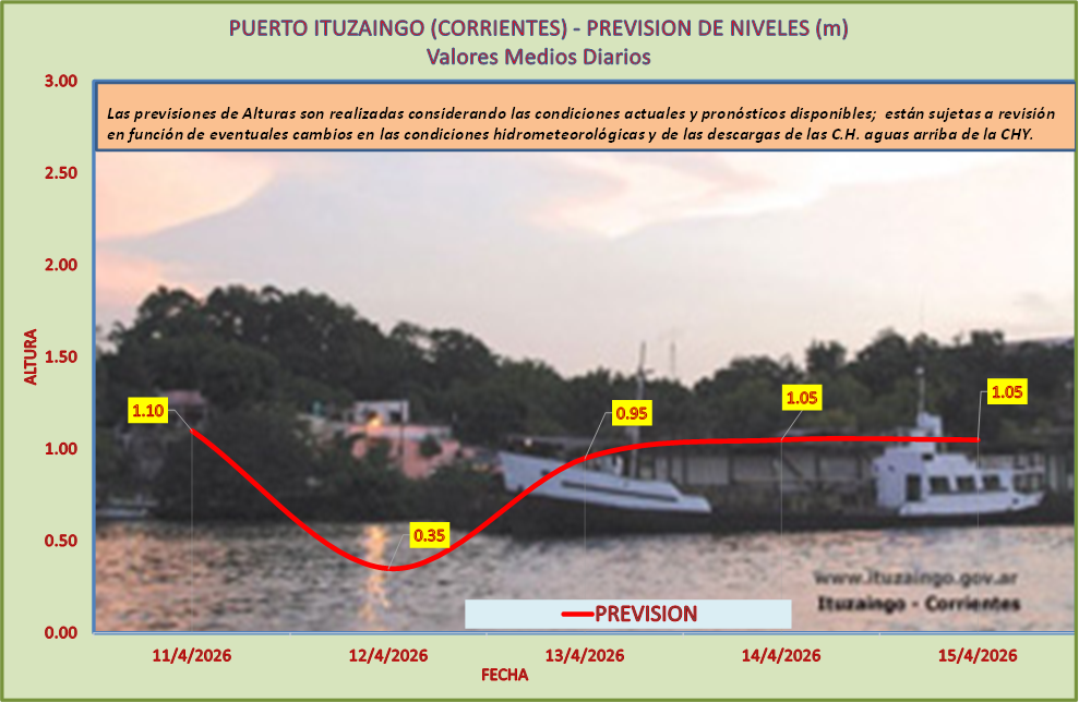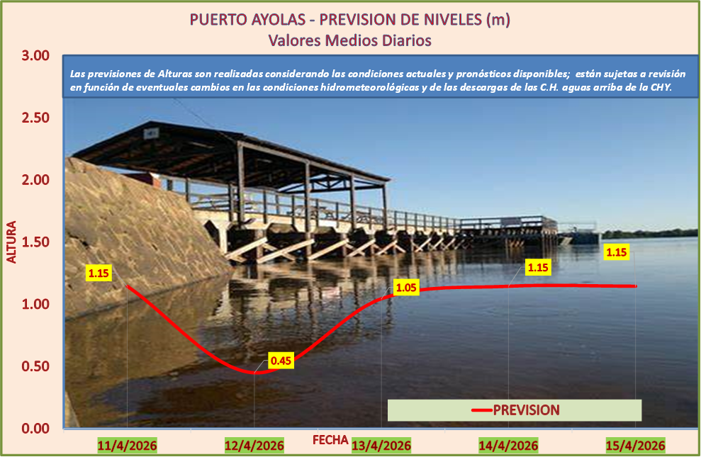 Las previsiones de Alturas son realizadas considerando las condiciones actuales y pronósticos disponibles y están sujetas a revisión en función de eventuales cambios en las condiciones hidrometeorológicas y de las descargas de las C.H. aguas arriba de la CHY.