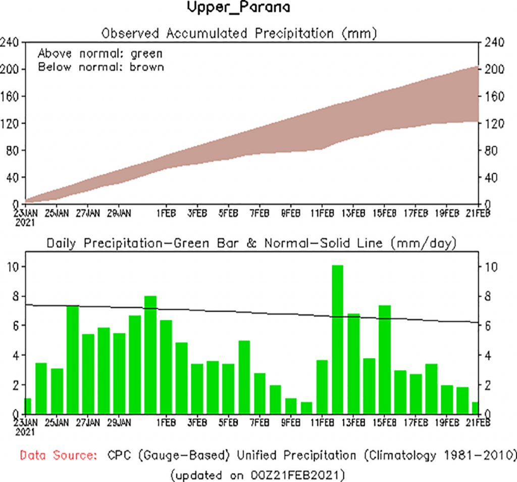 El pronóstico Hidrometeorológico del Centro Climático de referencia indica una tendencia semanal de poca significancia hidrológica en la cuenca de interés para la CHY con dispersión geográfica según sea la fuente consultada. (Ver gráfico Nro. 1).