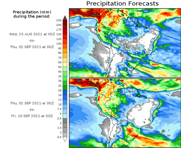El pronóstico Hidrometeorológico del Centro Climático de referencia indica una tendencia semanal de poca significancia hidrológica en la cuenca de interés para la CHY con dispersión geográfica según sea la fuente consultada. (Ver gráfico Nro. 1).