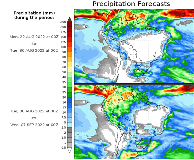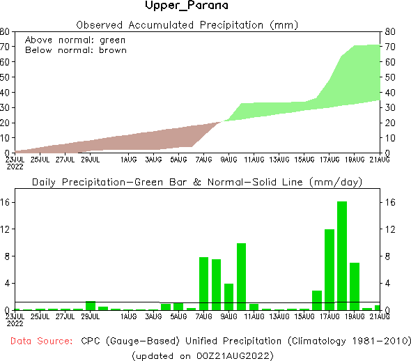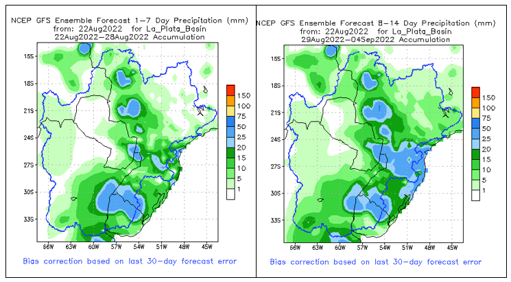 El pronóstico Hidrometeorológico del Centro Climático de referencia indica una tendencia semanal de poca significancia hidrológica en la cuenca de interés para la CHY con dispersión geográfica según sea la fuente consultada. (Ver gráfico Nro. 1).
