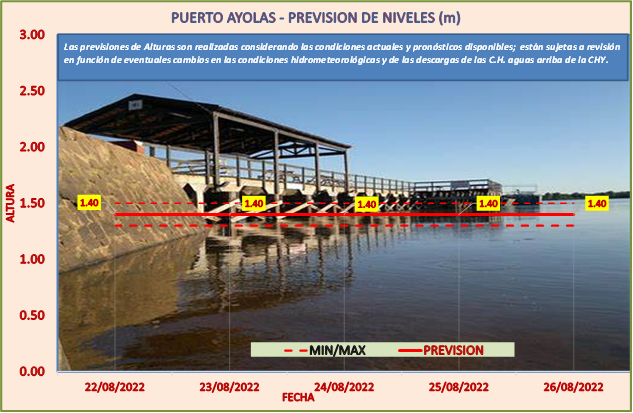 Las previsiones de Alturas son realizadas considerando las condiciones actuales y pronósticos disponibles y están sujetas a revisión en función de eventuales cambios en las condiciones hidrometeorológicas y de las descargas de las C.H. aguas arriba de la CHY.