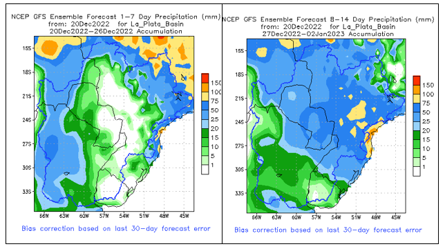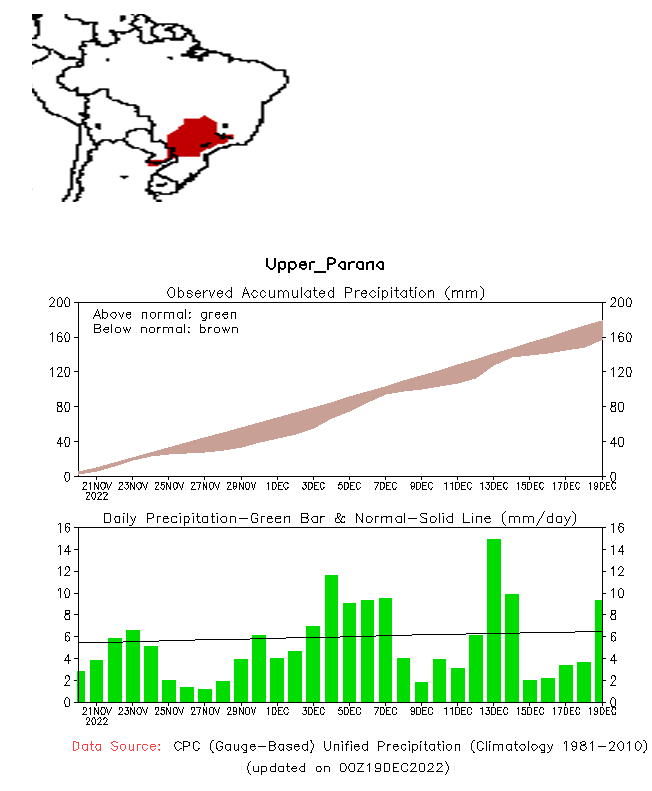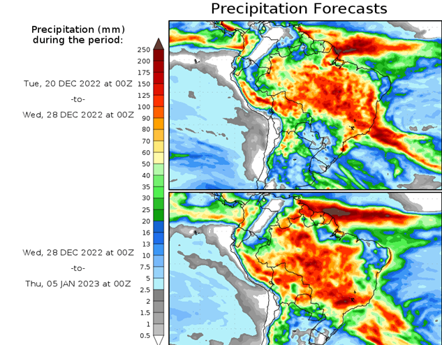 El pronóstico Hidrometeorológico del Centro Climático de referencia indica una tendencia semanal de poca significancia hidrológica en la cuenca de interés para la CHY con dispersión geográfica según sea la fuente consultada. (Ver gráfico Nro. 1).