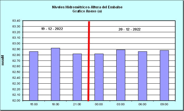 Nivel de Ayer (06:00 hs) = 82.93 mSNM Nivel de Hoy (06:00 hs) = 82.87 Msnm