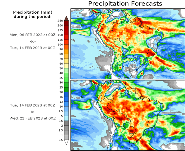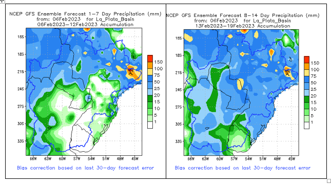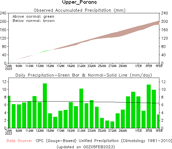 El pronóstico Hidrometeorológico del Centro Climático de referencia indica una tendencia semanal de poca significancia hidrológica en la cuenca de interés para la CHY con dispersión geográfica según sea la fuente consultada. (Ver gráfico Nro. 1).