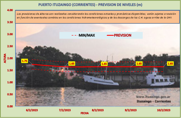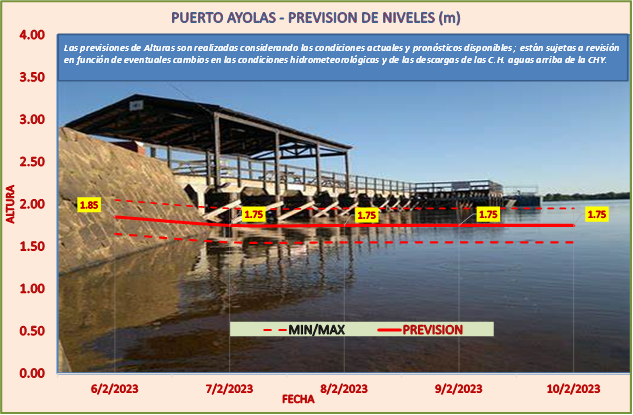 Las previsiones de Alturas son realizadas considerando las condiciones actuales y pronósticos disponibles y están sujetas a revisión en función de eventuales cambios en las condiciones hidrometeorológicas y de las descargas de las C.H. aguas arriba de la CHY.