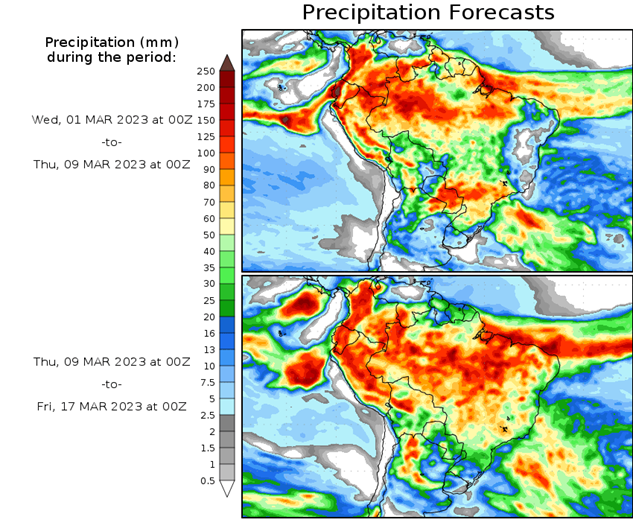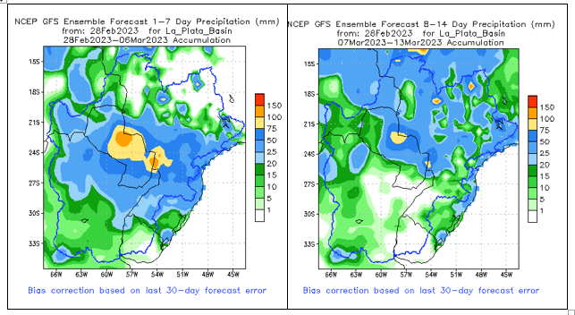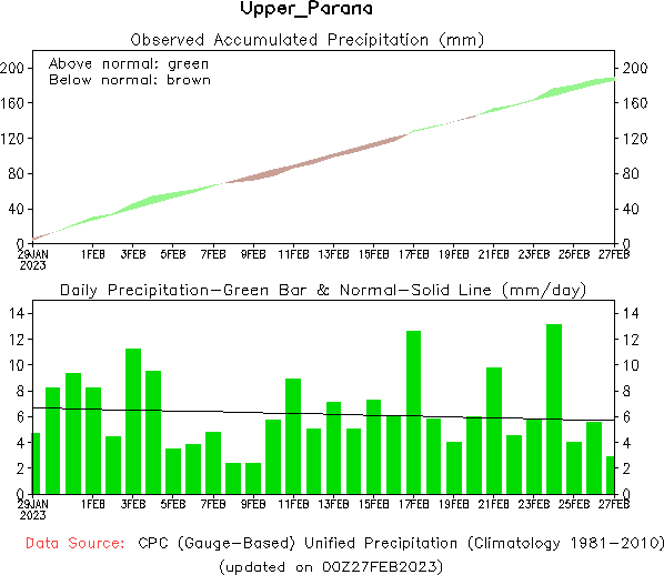 El pronóstico Hidrometeorológico del Centro Climático de referencia indica una tendencia semanal de significancia hidrológica en la cuenca de interés para la CHY con dispersión geográfica según sea la fuente consultada. (Ver gráfico Nro. 1).