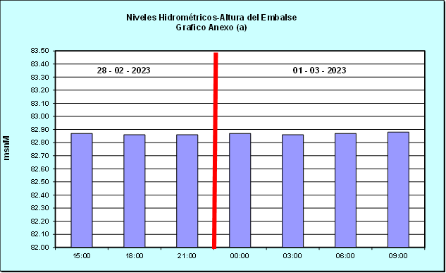 Nivel de Ayer (06:00 hs) = 83.83 mSNM Nivel de Hoy (06:00 hs) = 82.87 mSNM