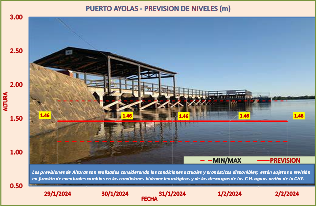 Las previsiones de Alturas son realizadas considerando las condiciones actuales y pronósticos disponibles y están sujetas a revisión en función de eventuales cambios en las condiciones hidrometeorológicas y de las descargas de las C.H. aguas arriba de la CHY.