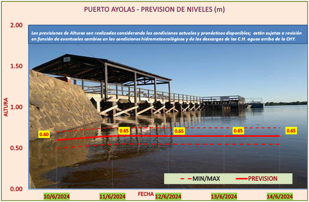 Las previsiones de Alturas son realizadas considerando las condiciones actuales y pronósticos disponibles y están sujetas a revisión en función de eventuales cambios en las condiciones hidrometeorológicas y de las descargas de las C.H. aguas arriba de la CHY.