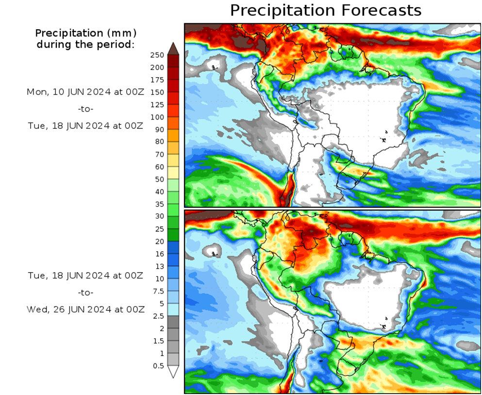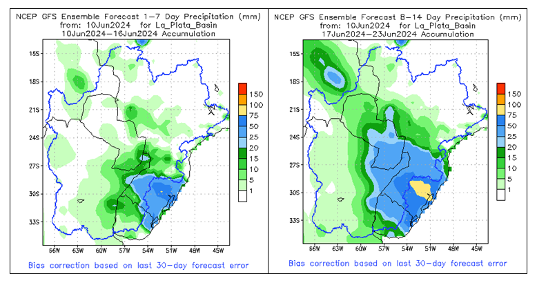 El pronóstico Hidrometeorológico del Centro Climático de referencia indica una tendencia semanal de poca significancia hidrológica en la cuenca de interés para la CHY con dispersión geográfica según sea la fuente consultada. (Ver gráfico Nro. 1).