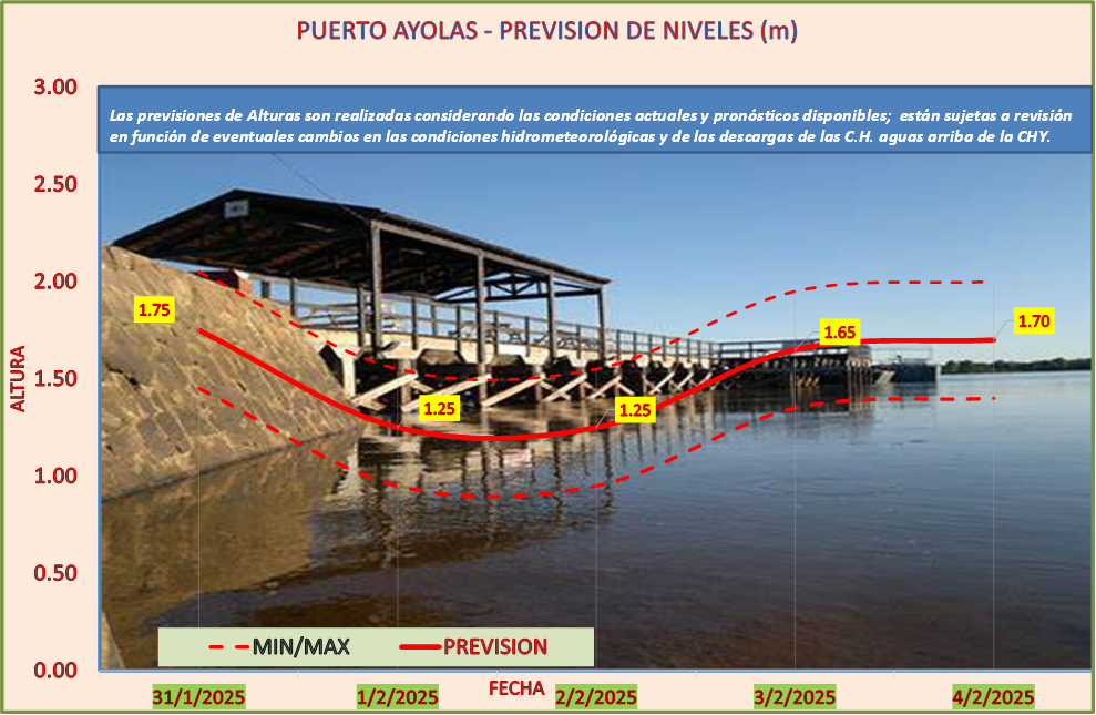 Las previsiones de Alturas son realizadas considerando las condiciones actuales y pronósticos disponibles y están sujetas a revisión en función de eventuales cambios en las condiciones hidrometeorológicas y de las descargas de las C.H. aguas arriba de la CHY.