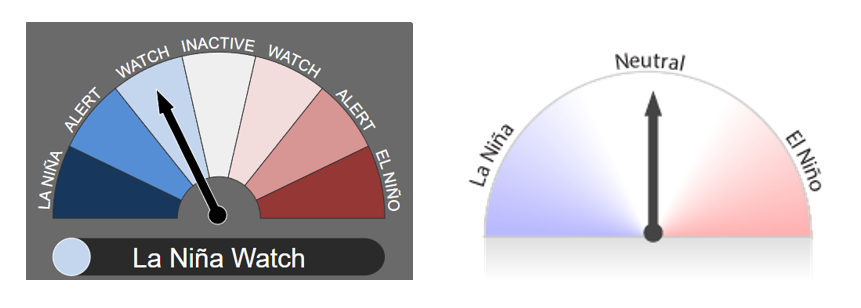 El fenómeno de El Niño-Oscilación del Sur (ENSO) es neutro, y tanto las temperaturas superficiales del mar (TSM) en el Océano Pacífico ecuatorial central como los patrones atmosféricos se encuentran en niveles neutros respecto de El Niño. Los índices atmosféricos, como los relacionados con los patrones de presión superficial, nubes y vientos alisios, son en general consistentes con un estado neutro respecto de El Niño. Aunque algunos han mostrado señales similares a las de La Niña durante las últimas semanas, estas señales no han sido consistentes.