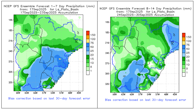 El pronóstico Hidrometeorológico del Centro Climático de referencia indica una tendencia semanal de poca significancia hidrológica en la cuenca de interés para la CHY con dispersión geográfica según sea la fuente consultada. (Ver gráfico Nro. 1).