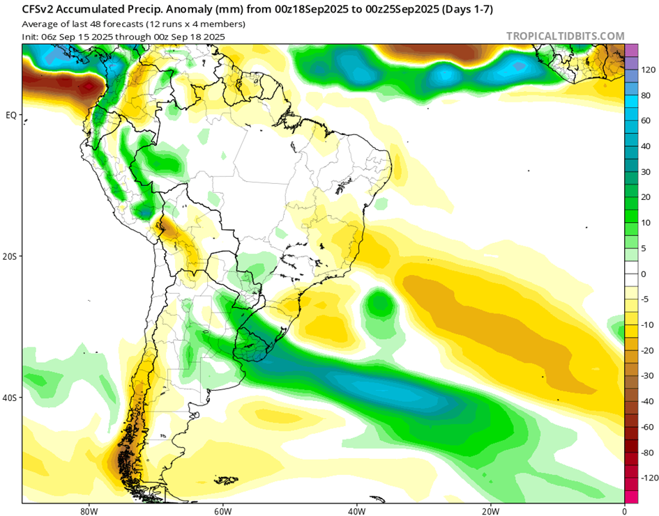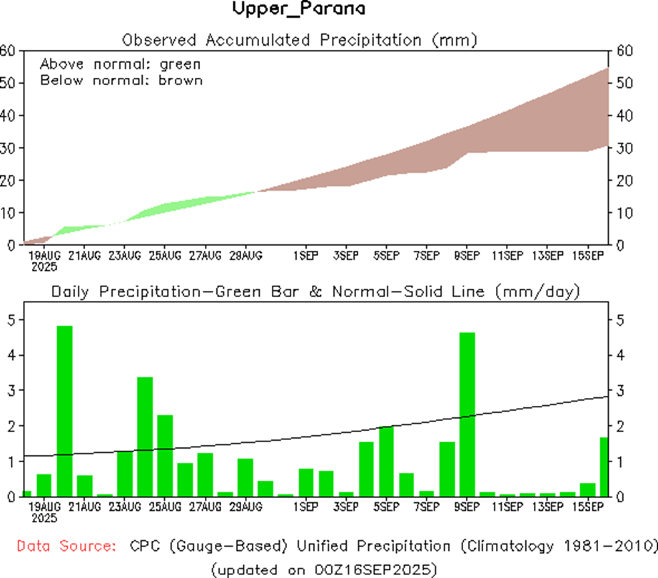 El fenómeno de El Niño-Oscilación del Sur (ENOS) se mantiene neutral. El último valor de Niño3.4 para la semana que finalizó el 24 de agosto es de -0,28 °C. Los valores neutrales de ENOS para Niño3.4 se encuentran entre -0,8 °C y +0,8 °C. Si bien las aguas subsuperficiales del Pacífico tropical han mostrado signos de enfriamiento en las últimas semanas, los indicadores atmosféricos se mantienen mayormente neutrales.