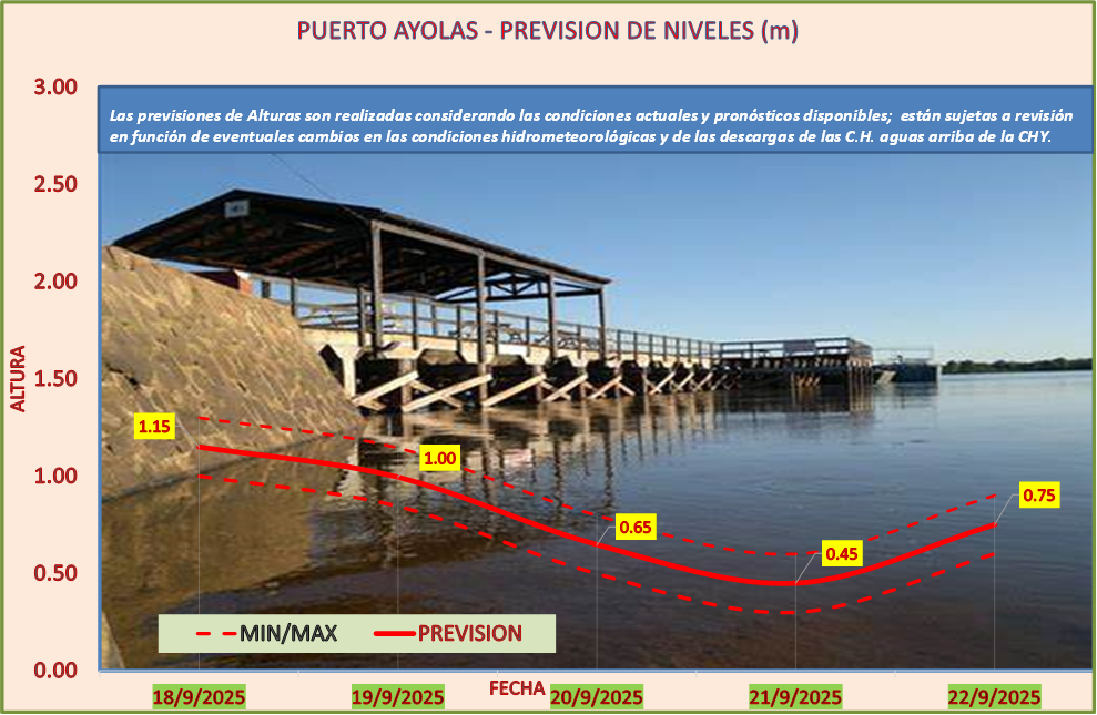 Las previsiones de Alturas son realizadas considerando las condiciones actuales y pronósticos disponibles y están sujetas a revisión en función de eventuales cambios en las condiciones hidrometeorológicas y de las descargas de las C.H. aguas arriba de la CHY.