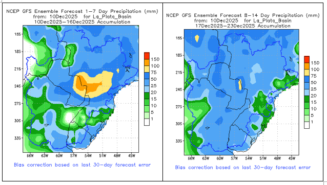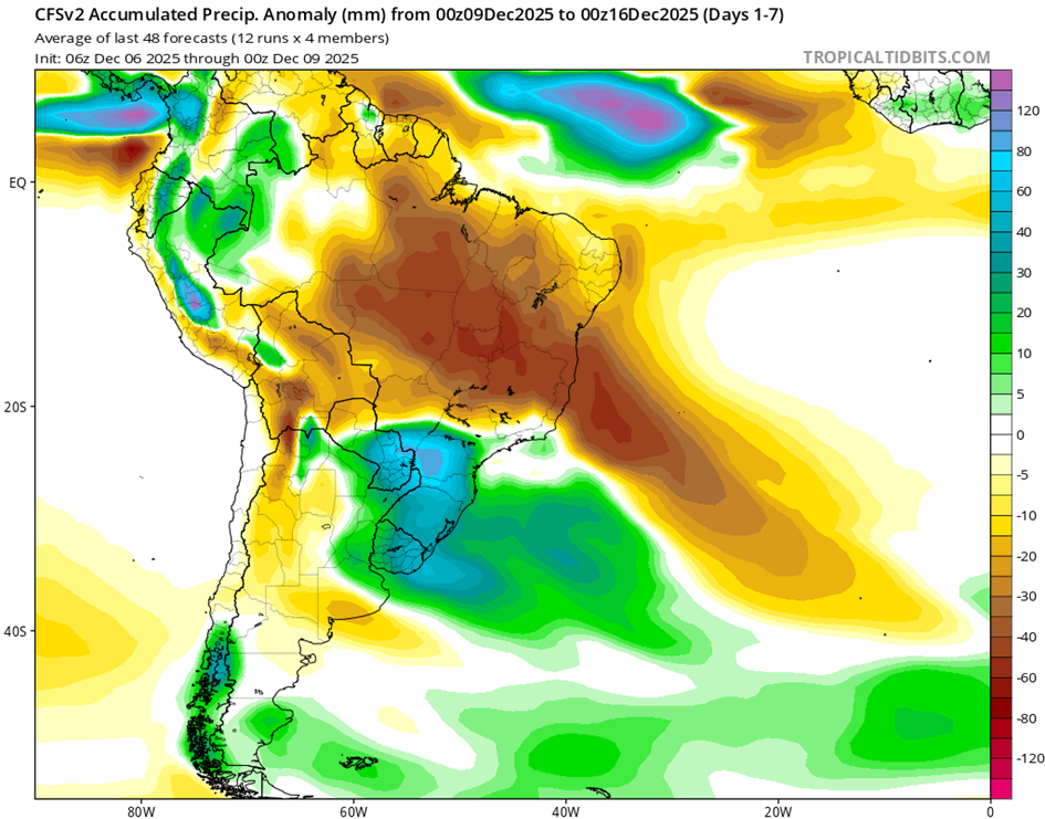 • El índice del Modo Anular del Sur (SAM) se mantiene neutral al 21 de noviembre de 2025. Se prevé que se torne negativo durante la próxima semana. Sin embargo, existe un amplio rango de posibles resultados, lo que indica una mayor incertidumbre hacia diciembre.