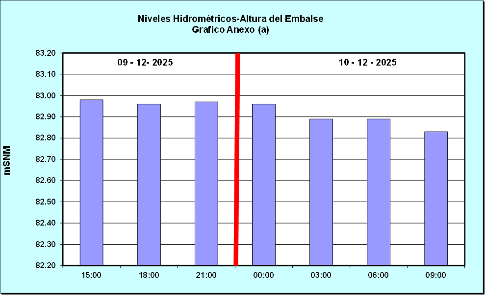 Nivel de Ayer (06:00 hs) = 83.10 mSNM Nivel de Hoy (06:00 hs) = 82.87 mSNM
