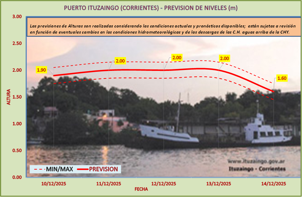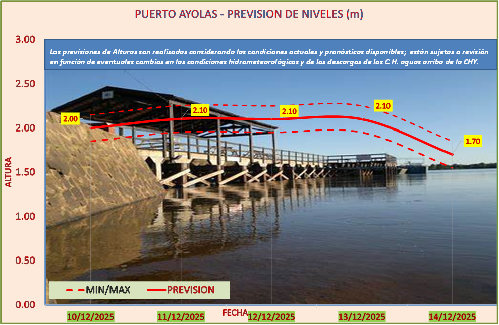 Las previsiones de Alturas son realizadas considerando las condiciones actuales y pronósticos disponibles y están sujetas a revisión en función de eventuales cambios en las condiciones hidrometeorológicas y de las descargas de las C.H. aguas arriba de la CHY.