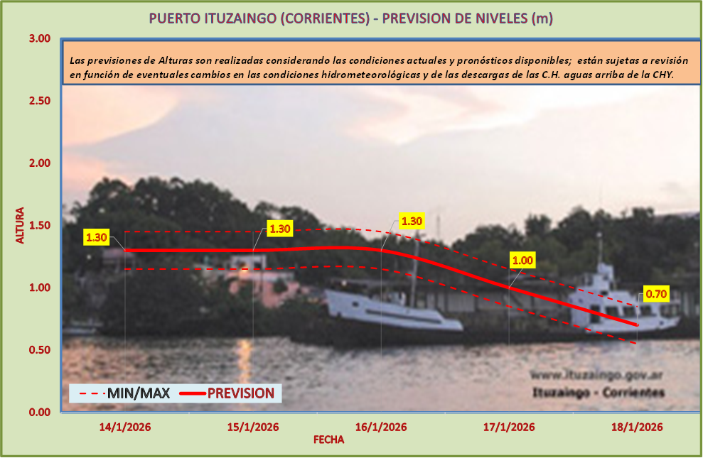 Las previsiones de Alturas son realizadas considerando las condiciones actuales y pronósticos disponibles y están sujetas a revisión en función de eventuales cambios en las condiciones hidrometeorológicas y de las descargas de las C.H. aguas arriba de la CHY.