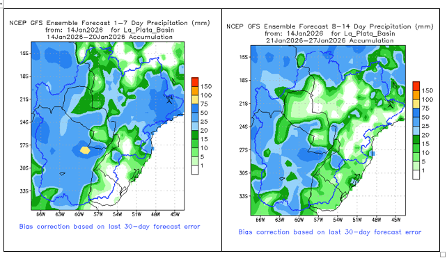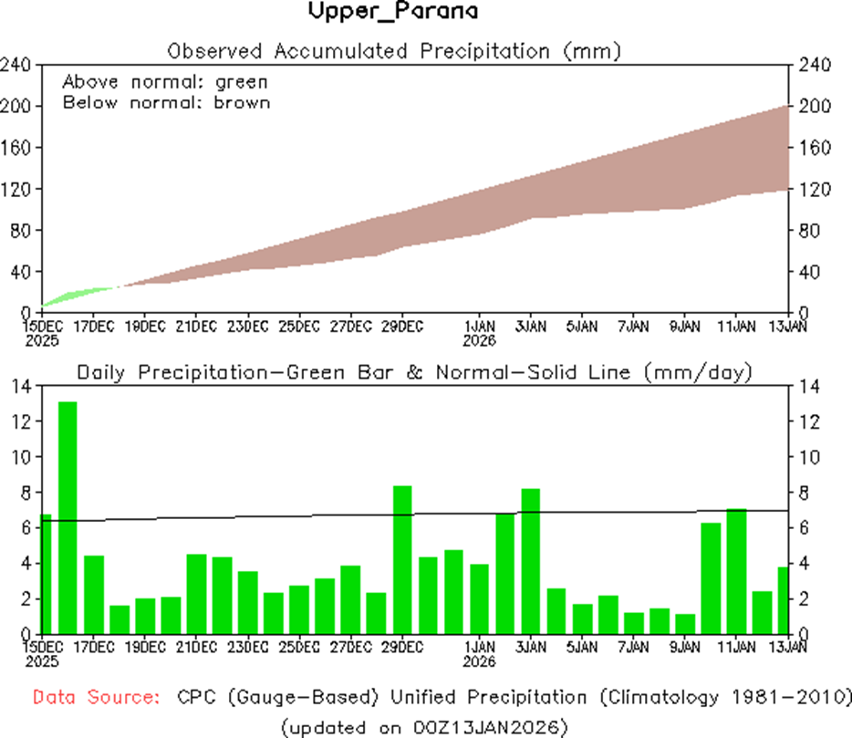 • El índice del Modo Anular Sur (SAM) se mantiene neutral al 3 de enero de 2026. Se prevé que se mantenga prácticamente neutral durante las próximas dos semanas. Posteriormente, existen diversos resultados posibles, lo que implica una menor claridad en la probable fase del SAM.