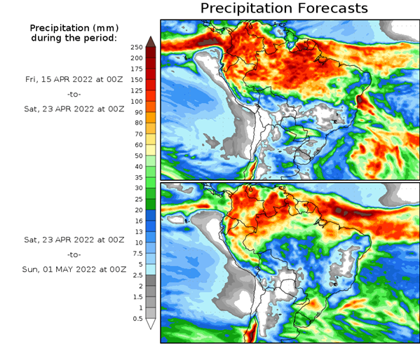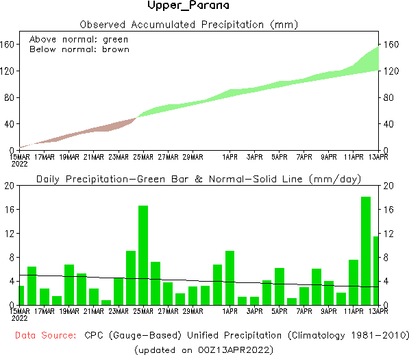 El pronóstico Hidrometeorológico del Centro Climático de referencia indica una tendencia semanal de poca significancia hidrológica en la cuenca de interés para la CHY con dispersión geográfica según sea la fuente consultada. (Ver gráfico Nro. 1).
