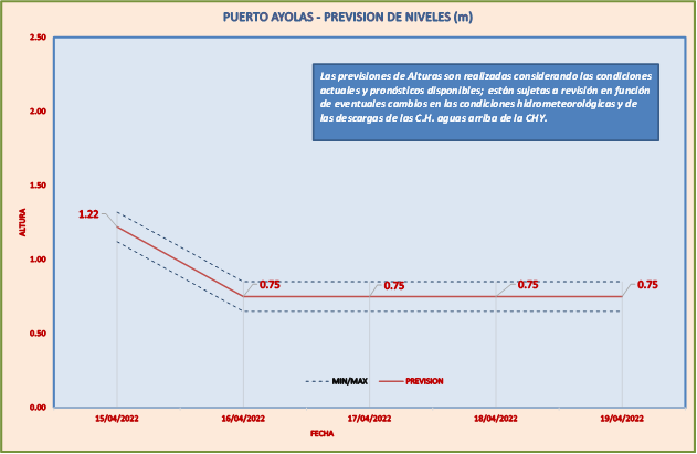 Las previsiones de Alturas son realizadas considerando las condiciones actuales y pronósticos disponibles y están sujetas a revisión en función de eventuales cambios en las condiciones hidrometeorológicas y de las descargas de las C.H. aguas arriba de la CHY.