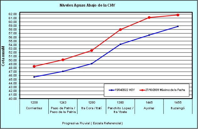 REFERENCIA: a modo de información – valores que originan riesgos de inundación en la zona de Ayolas.