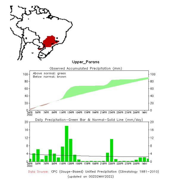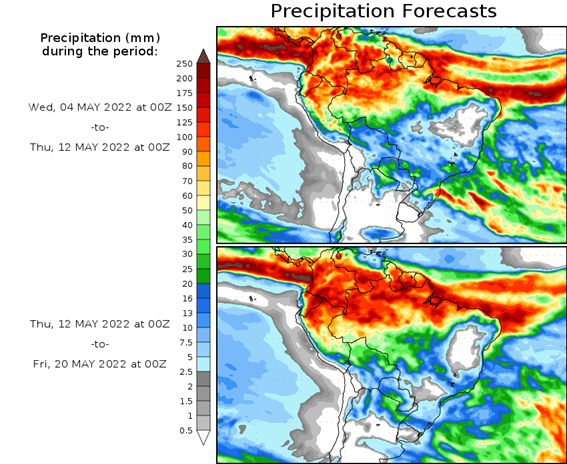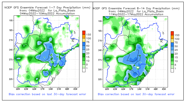 El pronóstico Hidrometeorológico del Centro Climático de referencia indica una tendencia semanal de poca significancia hidrológica en la cuenca de interés para la CHY con dispersión geográfica según sea la fuente consultada. (Ver gráfico Nro. 1).