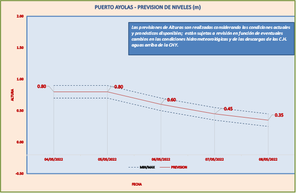 Las previsiones de Alturas son realizadas considerando las condiciones actuales y pronósticos disponibles y están sujetas a revisión en función de eventuales cambios en las condiciones hidrometeorológicas y de las descargas de las C.H. aguas arriba de la CHY.