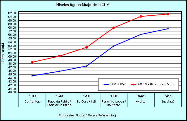 REFERENCIA: A modo de información – valores que originan riesgos de inundación en la zona de Ayolas.