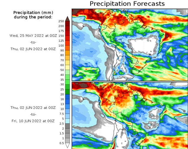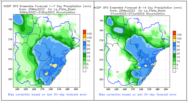 El pronóstico Hidrometeorológico del Centro Climático de referencia indica una tendencia semanal de poca significancia hidrológica en la cuenca de interés para la CHY con dispersión geográfica según sea la fuente consultada. (Ver gráfico Nro. 1).