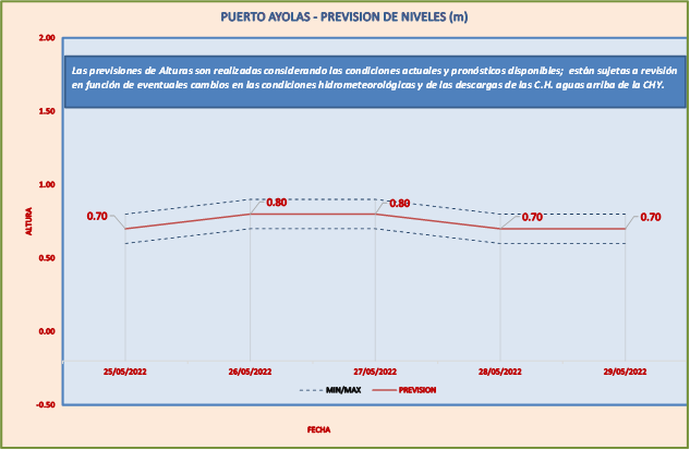 Las previsiones de Alturas son realizadas considerando las condiciones actuales y pronósticos disponibles y están sujetas a revisión en función de eventuales cambios en las condiciones hidrometeorológicas y de las descargas de las C.H. aguas arriba de la CHY.