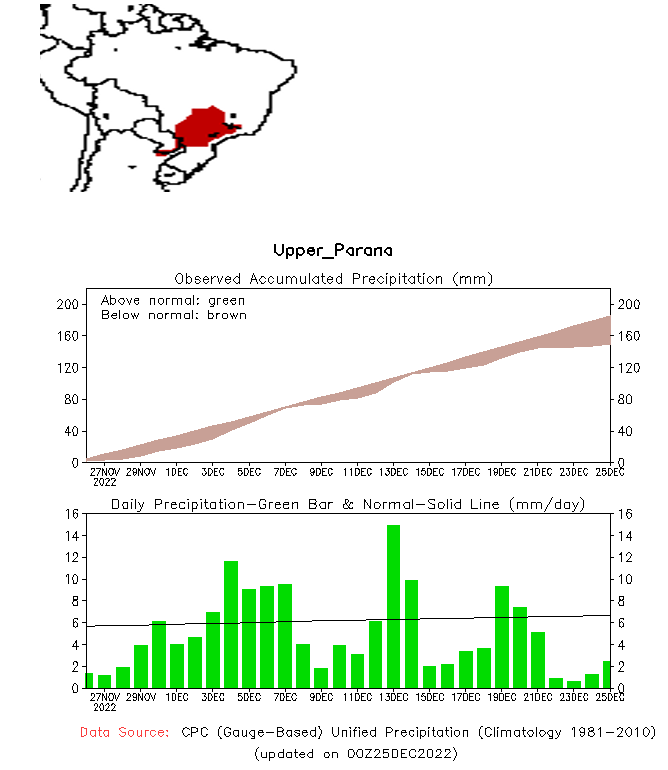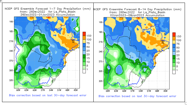 El pronóstico Hidrometeorológico del Centro Climático de referencia indica una tendencia semanal de poca significancia hidrológica en la cuenca de interés para la CHY con dispersión geográfica según sea la fuente consultada. (Ver gráfico Nro. 1).