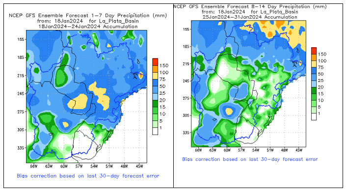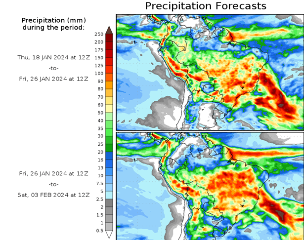 El pronóstico Hidrometeorológico del Centro Climático de referencia indica una tendencia semanal de significancia hidrológica en la cuenca de interés para la CHY con dispersión geográfica según sea la fuente consultada. (Ver gráfico Nro. 1).