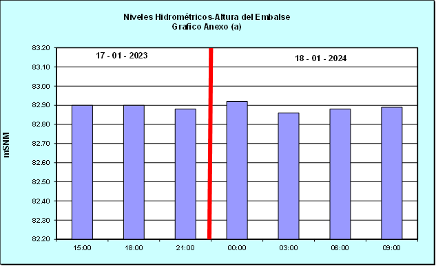 Nivel de Ayer (06:00 hs) = 82.87 mSNM Nivel de Hoy (06:00 hs) = 82.88 mSNM