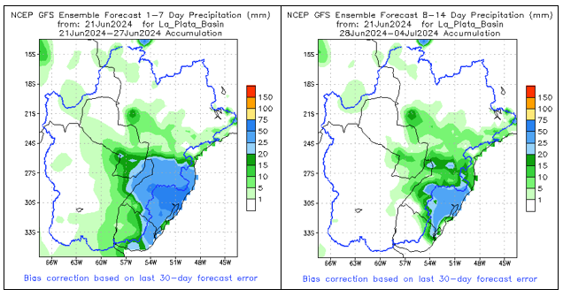 El pronóstico Hidrometeorológico del Centro Climático de referencia indica una tendencia semanal de poca significancia hidrológica en la cuenca de interés para la CHY con dispersión geográfica según sea la fuente consultada. (Ver gráfico Nro. 1).