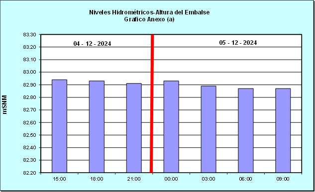 Nivel de Ayer (06:00 hs) = 82.94 mSNM Nivel de Hoy (06:00 hs) = 82.88 mSNM