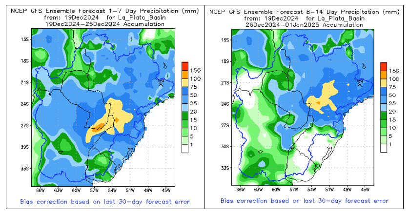 El pronóstico Hidrometeorológico del Centro Climático de referencia indica una tendencia semanal de leve hidrológica en la cuenca de interés para la CHY con dispersión geográfica según sea la fuente consultada. (Ver gráfico Nro. 1).