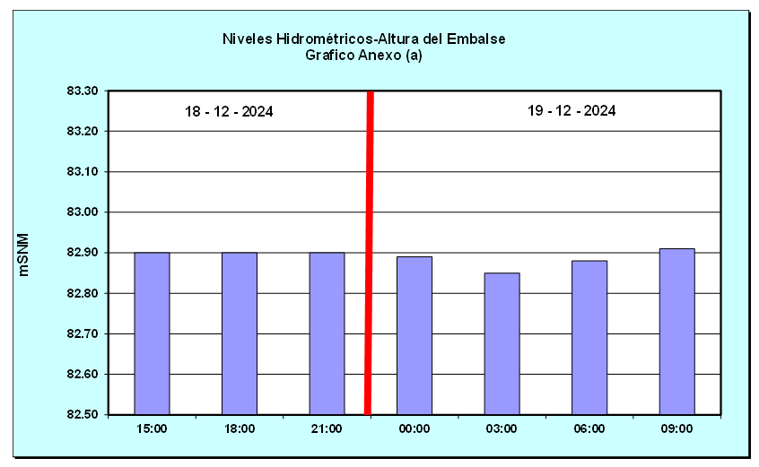 Nivel de Ayer (06:00 hs) = 82.91 mSNM Nivel de Hoy (06:00 hs) = 82.88 mSNM