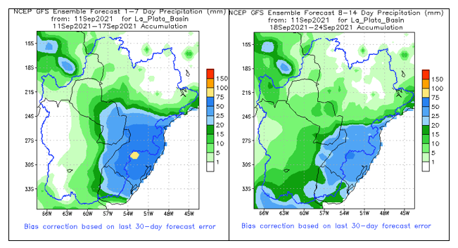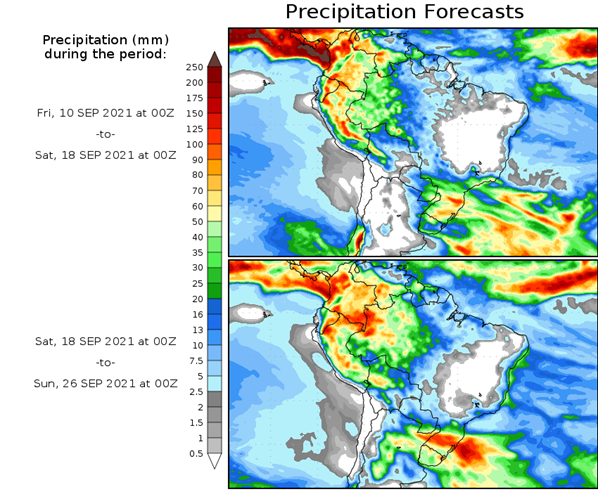 El pronóstico Hidrometeorológico del Centro Climático de referencia indica una tendencia semanal de poca significancia hidrológica en la cuenca de interés para la CHY con dispersión geográfica según sea la fuente consultada. (Ver gráfico Nro. 1).