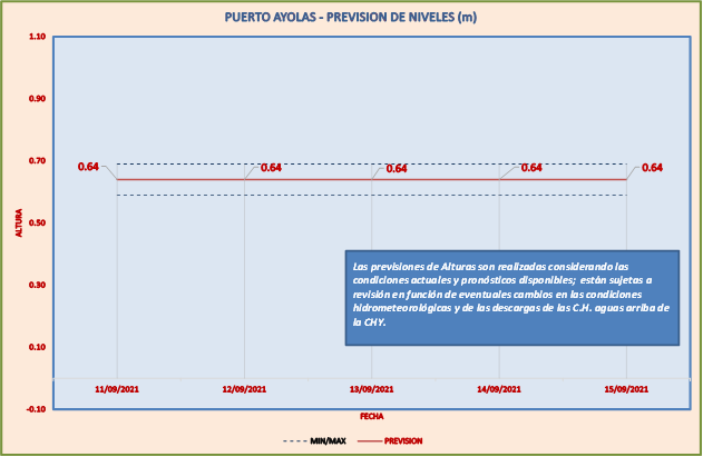 Las previsiones de Alturas son realizadas considerando las condiciones actuales y pronósticos disponibles y están sujetas a revisión en función de eventuales cambios en las condiciones hidrometeorológicas y de las descargas de las C.H. aguas arriba de la CHY.