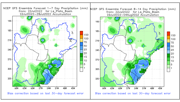 El pronóstico Hidrometeorológico del Centro Climático de referencia indica una tendencia semanal de poca significancia hidrológica en la cuenca de interés para la CHY con dispersión geográfica según sea la fuente consultada. (Ver gráfico Nro. 1).