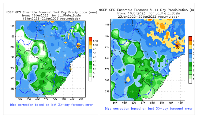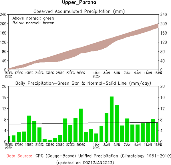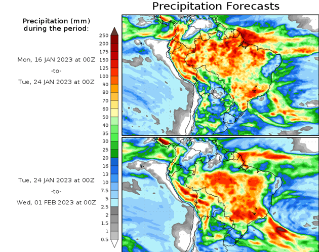 El pronóstico Hidrometeorológico del Centro Climático de referencia indica una tendencia semanal de poca significancia hidrológica en la cuenca de interés para la CHY con dispersión geográfica según sea la fuente consultada. (Ver gráfico Nro. 1).