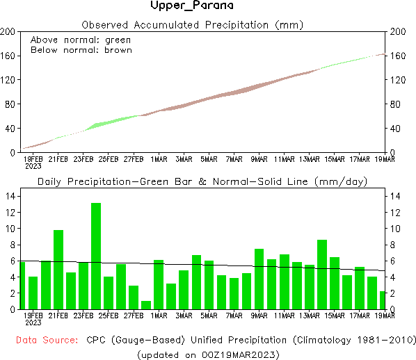 Las predicciones indican que las precipitaciones en el mes de marzo alcanzarían acumulados alrededor de su normal e incluso superando la media normal total mensual en varios sectores de la Región Oriental y el Bajo Chaco.