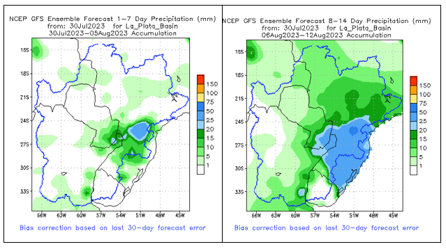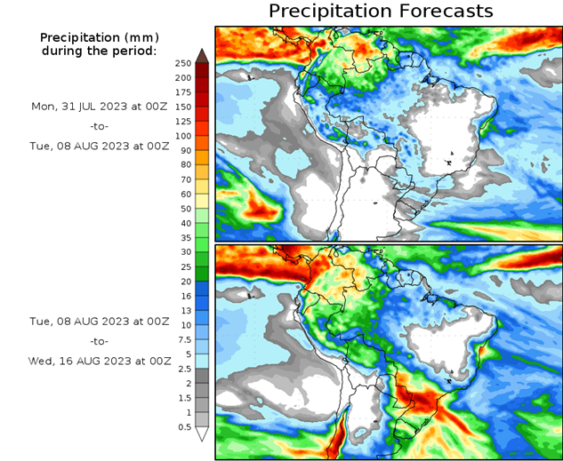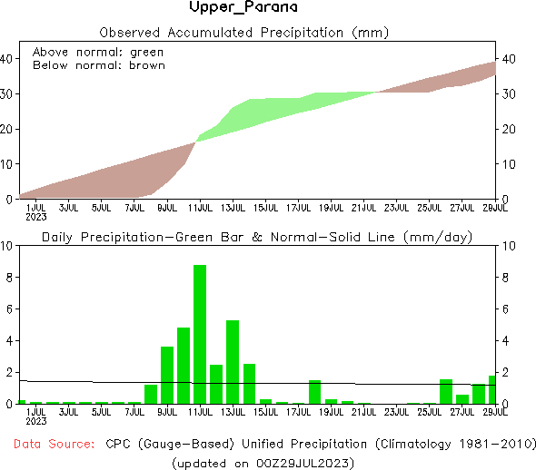 El pronóstico Hidrometeorológico del Centro Climático de referencia indica una tendencia semanal de poca significancia hidrológica en la cuenca de interés para la CHY con dispersión geográfica según sea la fuente consultada. (Ver gráfico Nro. 1).