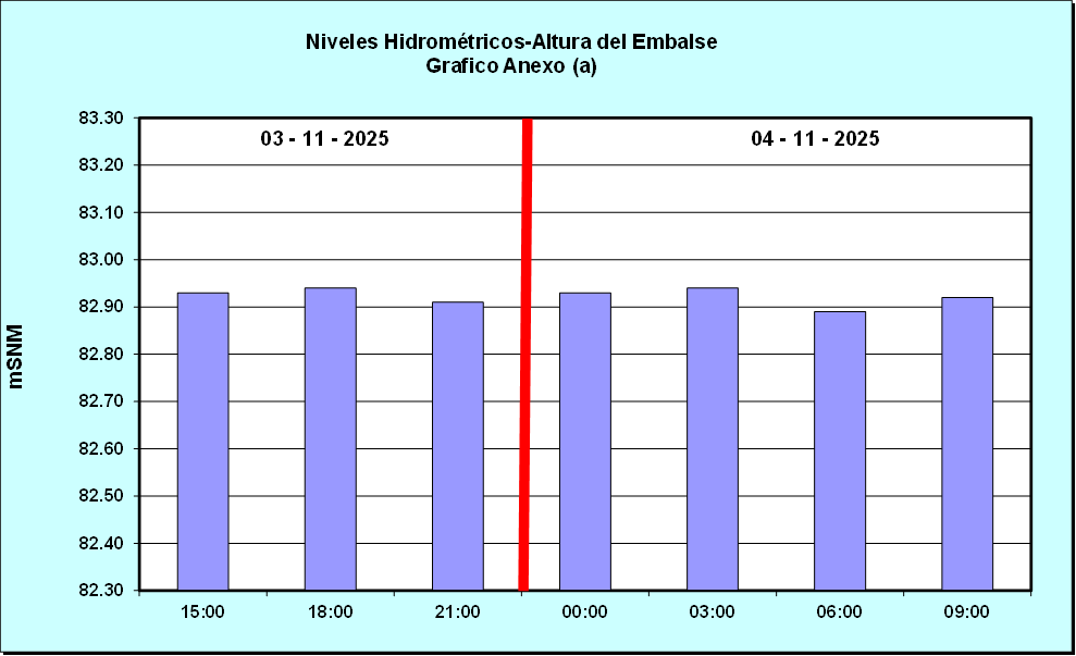Nivel de Ayer (06:00 hs) = 82.93 mSNM Nivel de Hoy (06:00 hs) = 82.89 mSNM